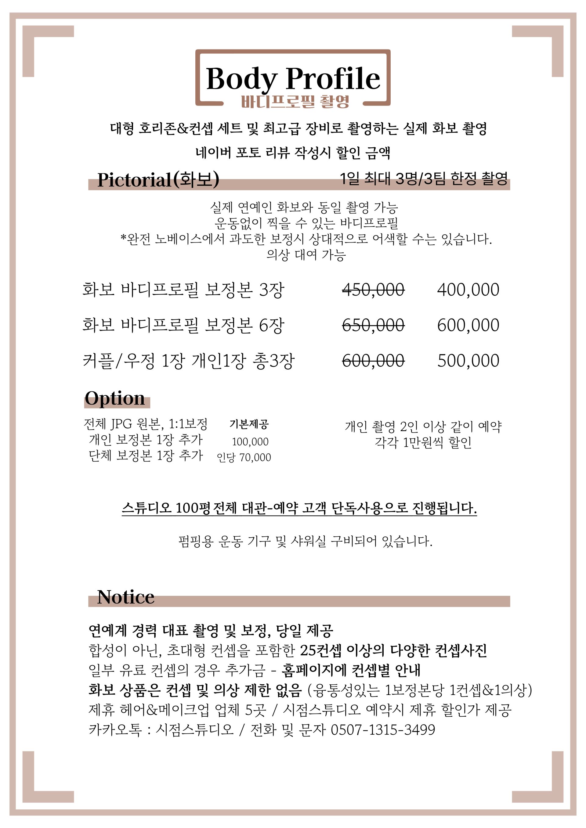 ◎화보 상품(프로필, 바디프로필)은 고객님들의 만족도 및 퀄리티를 최우선으로 하기 위해 예약제 100프로로 하루 1명~3명으로 마감합니다.