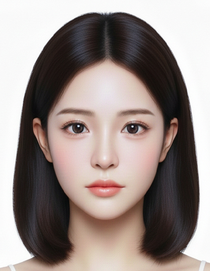 -무표정, 흰색배경, 어깨선까지 보정, 정면포즈, 여권 규정 적용